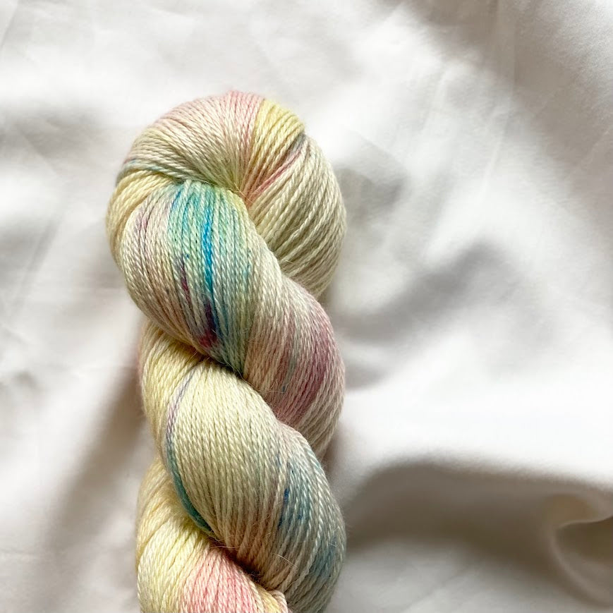 Vi farver på en række forskellige garner, der er nøje udvalgt for deres høje kvalitet. Vores merinould er økologisk, og kun vores strømpegarn er superwash-behandlet.